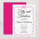 Convites Fifty and Fabulous Whimsical Pink and Black Script