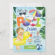 Convite de festas de piscina de aquarela, bonito, alegre e colorido. Perfeito para este verão! (Outros tons de pele/sexo estão disponíveis no compro) Cores do tema: Azul, verde e outras cores do verão. Design: Óculos de sol, bolas de praia, folhas tropicais, flutuação de pato amarelo, parasol
