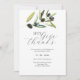 Uma escolha simples mas botânica para a Ação de Graças de 2023. Este modelo de convite de amizade apresenta um ramo de oliveira com seus detalhes em cinzas de carvão sobre um fundo branco nítido. A placa se reverte para uma cor verde de sábio complementar. Use os campos modelo para personalizar com os detalhes de sua parte. As cores são editáveis clicando no botão "Editar usando a ferramenta Design". Solicite placas impressas ou faça o download de um posto sem papel. Uma opção de sucesso para temas de festa de outono rústico. Arte e design de aquarela únicas de Victoria Grigaliunas de Do Tell A Belle.