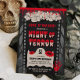 Está na hora de uma Noite de Terror! Este convite de aniversário de Halloween é perfeito para uma festa de cinema assustadora! Apresentando um balde de pipoca no estilo de fita, um fantasma, um espalhador de sangue, um fundo arrepiante e apresentando as palavras "Noite de Terror" em uma fonte de gotejamento de sangue — ele define a cena perfeita para uma triagem de quintal ou uma cesta de aniversário com tema de horror. Excelente para crianças, adolescentes e adultos que adoram figurinos, pipocas e filmes de terror. Este convite é uma maneira terrivelmente divertida de arrancar os gritares e celebrar no estilo assustador.