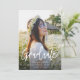 Um simples cartão postal de anúncio de foto de graduação com letra moderna para o seu fim de curso do ensino médio ou faculdade. Adicione sua própria foto com estilo. Foto com texto de graduação em letra cursiva e sobreposição de tipografia branca na foto. Padrão Boho no verso do convite.