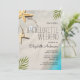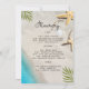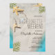 Beach Bachelorette Weekend Destino Convite para água do oceano azul, areia, estrelas, conchas e folhas tropicais.
