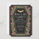 Está na hora de dar um despedida final a um único com este Convite de Fim de Semana para Rosas Góticos de Coffin. Estes convites apresentam um design de caixão elegante em rosas e espinhos. Perfeito para uma celebração escura e glamourosa! Faça o pedido agora e torne este marco inesquecível! Note que o ouro do convite NÃO é uma folha real e é impresso em cores planas.