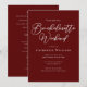 Este elegante convite de fim de semana de uma bachelorette burgundy apresenta um roteiro branco clássico para uma noiva que adora eventos quic e de escala superior. Celebre seu amigo com esta romântica e rica cor vermelha neste convite para festas de solteira minimalista e chique.