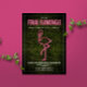 Tema final de bachelorette Flamingle neon apresentando neon inspira flamingo sobre um fundo de boxwood com texto e trim brancos.