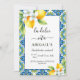 O convite para o fim de semana da Bachelorette Mediterrânica La Dolce Vita. Prepare-se para comemorar em estilo com a marca do novo convite de fim de semana da Bachelorette La Dolce Vita Mediterrânica! Este belo convite feito serve como um delicioso prelúdio para um fim de semana de diversão ensolarada e festividades inspiradas na Itália. O design é um testemunho da beleza do Mediterrâneo, que apresenta um padrão de azulejo azul e amarelo impressionante que evoca instantaneamente o charme da região. Galhos emergentes, que transbordam com limões amarelos brilhantes, enquadram artificialmente os cantos superior esquerdo e inferior direito, acrescentando um toque de sofisticado capricho. A combinação de limões e flores não só cria uma estética visualmente agradável, mas também incorpora o calor e a frescura da cidade sinônimo do conceito de "La Dolce Vita", que, como sabem, se traduz por "a doce vida" em italiano. Que este convite seja o seu primeiro gosto da experiência inesquecível que nos espera.