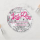Personalize esta engraçada e super fofa festa de solteira temática do lingo disco de 70's Last Disco ou convite para o fim de semana em forma de uma bola redonda de disco, com fontes de guião rosa-quente groovy, sotaques de design de 70's, e tipografia "pode cavá-la" no verso. Introduza facilmente os seus detalhes de redação e torne-os próprios para uma rapariga inteira que se vai embora no fim de semana ou para uma festa no teu pátio! Solicitações personalizadas de design e perguntas são sempre bem-vindas - clique no botão de mensagem ou envie um e-mail diretamente em: contact@figandlilyco.com