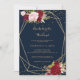 Este fim de semana de folhetos geométricos de ouro e tropicais vermelhos é perfeito para uma celebração moderna de festas de solteira. O design de marsala, artístico bordo, apresenta rosas de aquarelas, verdes, cor-de-rosa, burgundy e blush, combinados com verde, bem arrumados em torno de quadros de ouro geométricos, num buquê de flores gracioso e radiante.