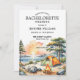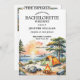 Concurso itinerário de fim de semana de bachelorette no exterior com floresta aquarela com lago e tenda com fogueira. Lindo se você planeja um acampamento ou um evento de vidro ou um retiro de spa no lado do campo. No verso há um modelo de código QR para adicionar seu link de site personalizado.