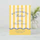 Celebre com estilo com este convite de festa de despedida de solteira moderno, apresentando listras amarelas ousadas combinadas com detalhes azuis nítidos para um visual fresco e sofisticado. Concebido para uma festa de despedida de solteira chic em um destino de verão, este convite com um charme retrô é perfeito para um itinerário de fim de semana de garotas no Mediterrâneo repleto de brunch com Prosecco, dias ensolarados e momentos inesquecíveis à noite com as amigas. Inspirado no charme icônico de Positano e da Costa Amalfitana na Itália, este convite de despedida de solteira à beira-mar combina listras divertidas com um layout limpo e moderno - perfeito para definir o tom para um fim de semana em um clube de praia sofisticado ou uma celebração inspirada na Itália no exterior.