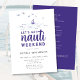 Um modelo de convite para fins de festa de solteira náutica moderno, elegante e chic, com impressão de tinta de uma cena de água, com ondas oceânicas, barco e gaivotas. Um design divertido, "vamos ganha nauti" para uma noiva moderna com modelos nas costas para todas as informações sobre o fim de semana divertido com as meninas. Uma escolha encantadora para um fim de semana de despedida de solteira de praia, um fim de semana de despedida de solteira costeira, um lago, um final de semana de despedida de solteira de beira-mar ou um fim de semana de despedida de solteira de barco ou iate.
