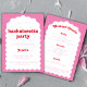 Faça a festa começar com o nosso vibrante convite à festa de solteira! Apresentando um design de arco ondulado em tons vermelhos e cor-de-rosa impressionantes, este convite define o palco para um fim de semana cheio de diversão. A fonte retrô adiciona um toque de nostalgia, perfeita para uma celebração de na moda. Imprima seus hóspedes com um itinerário detalhado incluído, garantindo que eles não percam uma batida. Peça este convite para a sua melhor bachelorette bash e deixe os bons tempos rolar!