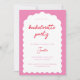 Está querendo adicionar um pouco de elegância à sua festa de solteira? Nosso convite moderno vermelho-chic e cor-de-rosa apresenta uma impressionante design de arco ondulante e uma caligrafia refinada. Imprima seus convidados com um itinerário de fim de semana que promete diversão e entusiasmo em todas as voltas. De bares de tendências a sessões de relaxamento do spa, este convite dá o tom para uma fabulosa celebração. Prepare-se para criar memórias inesquecíveis com seus amigos enquanto embarca nessa jornada de na moda. Encomenda agora e deixe as festividades começarem!