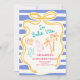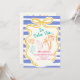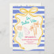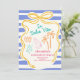 Celebre debaixo das palmas com esta vibrante design de solteira "La Dolce Vita". Apresentando elementos tropicais como ostras, maiôs, conchas e palmeiras, todos colocados contra um fundo listrado lúgubre — perfeito para uma ousada e surpreendente fuga pré-casamento da praia.