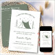 Convite itinerário de fim de semana personalizável para Camp Bachelorette. Apresentando uma ilustração mínima moderna de linha de campo em verde e branco de floresta. Ao contrário, há um modelo itinerário, e um código QR que você pode vincular à sua Venmo ou Cashapp para pagamentos ou à sua página da bachelorette. Basta adicionar o URL à área fornecida em "personalizar esta modelo" e um novo código QR marca será gerado no convite.