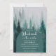 Fim de semana na floresta. Design de Chá de panela com pinheiros de enfumaçado, rusticidade, com uma floresta de pinheiros de aquática e uma disposição tipográfica moderna com fontes elegantes. O texto pode ser facilmente personalizado para um único design único para seu dia especial