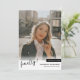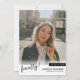 Este anúncio de graduação moderno apresenta a palavra finalmente escrita em preto sobre uma foto de solteiro na frente do cartão. a parte traseira do cartão adiciona 4 de suas fotos favoritas com seu texto ou detalhes adicionais.