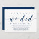 Tema moderno e sofisticado em azul marinho, cartão de convite de elopamento de casamento (Finalmente, Fizemos). É perfeito para a sua celebração casual de elopamento de casamento à beira do lago.
