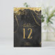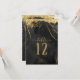 Um fundo de aquarela em tons de cinza de carvão a preto é tocado por um abstrato de linhas de ouro finas e efeitos de iluminação reluzentes para criar as peças desta bela suíte de casamento. A carta de número da mesa de casamento mostrada aqui também apresenta uma caligrafia elegante e uma modelo para adicionar facilmente seus próprios nomes, data de casamento e números de mesas. Procure ID867 para ver outras peças e opções de cores para este conjunto.