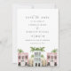 Isso permite salvar a data com edifícios de aquarela que representam a linha do arco-íris em Charleston. Este convite pode ser usado em qualquer local e a maioria dos textos é editável.