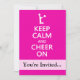Mantenha Calma e Anime-se, o gráfico de cheerleader rosa e branco é divertido e excelente para meninas e mulheres que amam o espírito de equipe, animadoras e torcendo por sua equipe favorita, ou competir em competições competitivas de líderes de torcida. Fundo rosa brilhante e quente com a silhueta de um cheerleader pulando com pom-poms em branco. Todos os Designs Copyright © 2013 www.CuteComfy.com