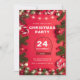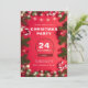 Convites bonitos com fundo vermelho e luzes de Natal. Dentro um globo de neve, a festa. À volta, bolas de Natal, perucas de abeto, e cana doce.