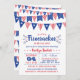 Comemore em estilo com estes convites de chuvas "Firecracker 4 de julho". O design apresenta sinalizadores vermelhos, brancos e azuis de montagem com texto simples de editar em um fundo branco. Itens correspondentes podem ser encontrados na coleção.