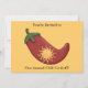 design personalizável para um primavera ou feriado de verão, aquecimento doméstico, graduação, aniversário ou festa de aposentadoria, ou qualquer reunião. O convite apresenta um design ocidental divertido e colorido, com uma pimenta vermelha, cheia de um brilhante ouro amarelo. Chile relleno! design de cowboy e cowgirl nas costas. Com uma pequena ajuda dos meus amigos em www.scrappindoodles.com. Procure por selos de Ela Wolf Medicine.