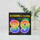 Este design de convite de aniversário vibrante e divertido apresenta um padrão colorido inspirado em fogos de artifício fabulosos e comemorativos, juntamente com o número "39", com um espectro multicolor de arco-íris ou um padrão de gradiente. O nome na frente pode ser personalizado. A parte traseira apresenta informações personalizadas sobre a parte. Convites de aniversário como este podem ser usados para convidar hóspedes para uma festa de aniversário que está sendo realizada para celebrar o trigésimo nono aniversário de alguém. [~Z0000337]