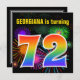 Este design de convite de aniversário vibrante e divertido apresenta um padrão de inspiração de fogos de artifício fabulosos coloridos, juntamente com o número "72", que possui um espectro multicolor de arco-íris ou um padrão de gradiente. O nome na frente pode ser personalizado. A parte traseira apresenta detalhes personalizáveis sobre a parte. Convites de aniversário como este podem ser enviados a potenciais convidados para uma festa de aniversário que comemora o setenta e segundo aniversário de alguém. [~Z0000337]