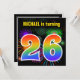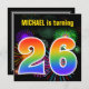 Este design de convite de aniversário vibrante e divertido apresenta um padrão colorido inspirado em fogos de artifício comemorativos que explodem, juntamente com o número "26" que inclui um espectro multicolorido como o arco-íris ou um padrão de gradiente. O nome na frente pode ser personalizado. A parte traseira apresenta detalhes personalizáveis sobre a parte. Convites de festas de aniversários como este podem ser enviados para convidar convidados para uma festa de aniversário que comemora o vigésimo sexto aniversário de alguém. [~Z0000337]