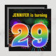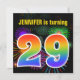 Este design de convite de aniversário vibrante e divertido apresenta um padrão colorido inspirado em fogos de artifício comemorativos que explodem, juntamente com o número "29", tendo um espectro multicolorido como o arco-íris ou um padrão de gradiente. O nome na frente pode ser personalizado. A parte traseira contém detalhes personalizados sobre a parte. Convites de festas de aniversários como este podem ser usados para convidar convidados para uma festa de aniversário que está sendo realizada para comemorar o vigésimo nono aniversário de alguém. [~Z0000337]