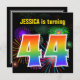 Este design de convite de aniversário vibrante e divertido apresenta um padrão colorido inspirado em fogos de artifício comemorativos que explodem, juntamente com o número "44" que inclui um espectro multicolorido inspirado no arco-íris ou um padrão de gradiente. O nome na frente pode ser personalizado. A parte traseira contém informações personalizadas sobre a parte. Convites de festas de aniversários como este podem ser usados para convidar convidados para uma festa de aniversário que está sendo realizada para celebrar o quarenta e quarto aniversário de alguém. [~Z0000337]