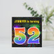 Este design de convite de aniversário vibrante e divertido apresenta um padrão inspirado em fogos de artifício celebratórios coloridos, juntamente com o número "52", tendo um espectro multicolorido como o arco-íris ou padrão de gradiente. O nome na frente pode ser personalizado. A parte traseira apresenta informações personalizadas sobre a parte. Convites de festas de aniversários como este podem ser enviados para convidar convidados para uma festa de aniversário que comemora o cinquenta segundo aniversário de alguém. [~Z0000337]