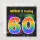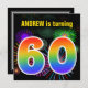 Este design de convite de aniversário vibrante e divertido apresenta um padrão inspirado em fogos de artifício celebratórios coloridos, juntamente com o número "60", tendo um espectro de inspiração multicolorido no arco-íris ou padrão de gradiente. O nome na frente pode ser personalizado. A parte traseira contém informações personalizáveis sobre a parte. Convites de festas de aniversários como este podem ser enviados a potenciais convidados para uma festa de aniversário que comemora o sexagésimo aniversário de alguém. [~Z0000337]
