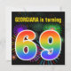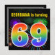 Este design de convite de aniversário vibrante e divertido apresenta um padrão colorido inspirado em fogos de artifício comemorativos que explodem, juntamente com o número "69", tendo um espectro de inspiração multicolorido no arco-íris ou um padrão de gradiente. O nome na frente pode ser personalizado. A parte traseira contém detalhes personalizados sobre a parte. Convites de festas de aniversários como este podem ser enviados a potenciais participantes para uma festa de aniversário que comemora o sexagésimo nono aniversário de alguém. [~Z0000337]