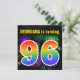 Este design de convite de aniversário vibrante e divertido apresenta um padrão de fogos de artifício celebratórios coloridos, inspirado no espetáculo, juntamente com o número "96", que inclui um espectro multicolorido como o arco-íris ou um padrão de gradiente. O nome na frente pode ser personalizado. A parte traseira apresenta detalhes personalizáveis sobre a parte. Convites de festas de aniversários como este podem ser enviados a potenciais participantes para uma festa de aniversário que se realiza para celebrar o 96º aniversário de alguém. [~Z0000337]