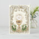 Celebrating the Sacrament of First Holy Communion is a wondrous occasion. This traditional Catholic custom-designed vintage First Holy Communion Invitation features a beautiful image of the Chalice and Host, the Eucharist overlaid on an ornate gold frame, accented with a white floral calla lilies and gold design. All text and fonts can be easily modified.