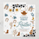 Saddle up for a fun-filled celebration with this western-themed first rodeo birthday invitation! Featuring cowboy hats, boots, lassos, steer skulls, and rustic cow print accents, this design perfectly captures the spirit of the Wild West. The warm brown, blue, and gold tones create a festive and stylish look thats ideal for a childs milestone party. Personalize with your event details to make it uniquely yours and set the stage for an unforgettable rodeo-themed birthday gathering.