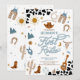 Saddle up for a fun-filled celebration with this rodeo-themed first birthday invitation! Featuring cowboy hats, boots, lassos, steer skulls, cacti, and a bold cow print design, this western-inspired card sets the perfect tone for your little ones big day. With rustic colors of brown, blue, gold, and black, its ideal for a country-style party that guests will remember. Personalize easily with your event details and create a unique keepsake for family and friends.