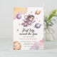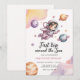 Celebrate your little girl’s milestone with this dreamy “First Trip Around the Sun” birthday invitation featuring a sweet pink astronaut floating among soft watercolor planets.