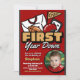 Celebrate your little MVP’s big day with this fun football-themed “First Year Down” invitation! Perfect for your baby boy’s first birthday party, this sporty design features a red and gold color scheme with football gear, a helmet, and a game playboard for that game-day feel. Product Details: • “First Year Down” football birthday design • Great for baby boys turning one • Bold red, gold, and black color palette • Editable text for name, date, time, and address • Perfect for sports or football-themed parties