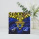 Joia de ouro elegante com nós celtas, damasco Art Nouveau clássico e único com pedras de safira 3D vibrantes, facilmente personalizável com seu texto e iniciais como cerimônia de casamento, anúncio nupcial, sweet 16, cartão de lugar, save-the-date, agradecimento, chás de bebê, chás de noiva, festas de aniversário de quinceanera, Bat Mitzvah, chás de noivado romântico, Natal, feriado, escritório, reuniões de família, celebrações de Ano Novo, aniversários, encontros, formaturas escolares, concerto, recital ou qualquer outro evento que você desejar!