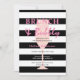 Black and White Stripe com Brunch Rosa e Vidro de Champanhe Rosa Cintilante. Convite para modelo de festa de aniversário de pronto para personalizar. Se você quiser alterar a cor ou o estilo da fonte, clique em personalizar ainda mais no final do modelo. Os materiais de papelaria e de festa correspondentes estão disponíveis na loja.