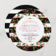 Ilustração elegante da coroa do natal com vergreens verdes e bagas vermelhas do natal sobre as modernas riscas negras e brancas. Círculo branco no centro para o convite de festas de janto de natal de texto personalizável.
