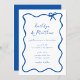 Convites Fita Desenhada À Mão Casamento Azul Francês Trivia