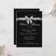 Convite de celebração de aniversário de cinquenta anos com design de fita e laço preto e prateado elegante. Convite preto formal com texto branco e laço. Todas as partes deste convite são impressas, sem fita real anexada.