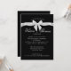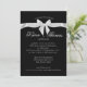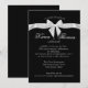Convite de celebração de aniversário de cinquenta anos com design de fita e laço preto e branco elegante. Convite preto formal com texto e laço brancos. Todas as partes deste convite são impressas, sem fita real anexada.