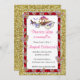 Convites Fita Vermelha Dourada Glitter Royal Princess Birda