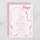 Convite para chá de fraldas com arco e fita cor-de-rosa-d'água. Personalize com suas informações ou clique em "Clique para personalizar mais" para editar estilos de fonte, tamanho e cores.